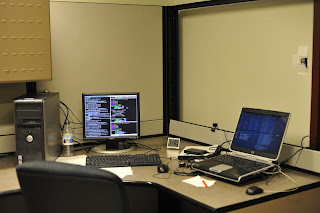 Les conditions de travail sont très agréables sauf un (gros) point noir : les bureaux où travaillent les invités et les thésards sont aveugles et pas vraiment bien éclairés... J'ai dû démonter un faux mur pour accéder à un interrupteur (et il n'était même pas prévu d'y accéder, cf les post-it mis pour cacher la misère à droite sur la photo..) En fait, les lumières sont éclairées nuit et jour... J'y reviendrai dans un prochain post.