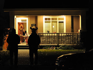 Halloween est un fête très fêtée ici. Elle permet à tout le monde de se déguiser en n'importe quoi (vraiment, tout y passe...), aux enfants de remplir leur sacs de bonbons, souvent sous l'œil attentif d'un ou deux parents, et aux autres d'acheter profusion de bonbons et articles chocolatés.