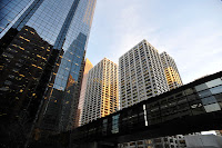 Contrairement aux environs résidentiels où s'étendent sur des kilomètres carrés des petites maisonnettes de plain-pied, le centre ville s'élève assez haut.