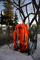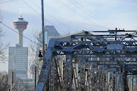 C'est pourtout place toute petite et encore toute entourée de neige. C'est la seule « vraie » place de Calgary cependant. L'Olympic Plaza, je l'ai déjà mise en petit sur ce blog, prise de nuit. Elle présentait deux ou trois illuminations et quelques patineurs courageux. C'est supposé être un peu le "centre" de la ville avec la Calgary Tower, l'hôtel de ville et bientôt la Bow Tower accolés et Stephen avenue s'y jetant dessus.