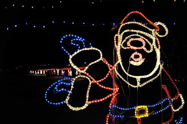 Je n'ai pas dit les rues en fêtes car globalement, il n'y a rien à signaler. Quelques particuliers s'essaient à mettre quelques ampoules dans leur jardinet. Une photo un peu caricaturale :