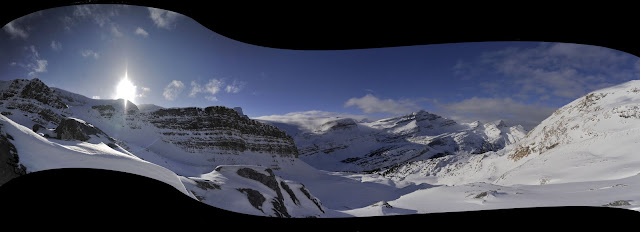 Pleins de témérité, on s'enfonce un peu plus loin dans les Rocheuses pour deux journées consécutives de ski. La première un peu après Lake Louise, au départ du lac Bow : Crowfoot Mountain. La seconde, juste avant Lake Louise, à la frontière avec la Colombie britannique : Storm Mountain.