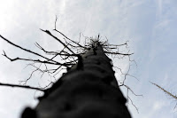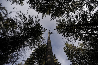 La forêt fut complètement brûlée quelques années auparavant, il reste d'innombrables troncs d'arbre par terre. Il y a de la neige dans la forêt, mais pas assez pour ne que le franchissement des arbres à terre représente parfois un réel problème.