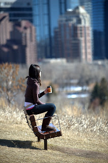 Une particularité d'Edmonton, c'est sa rivière, la Saskatchewan Nord. Elle coule au fond d'une vallée qui partage le ville en deux. C'est un endroit non construit et donc un vaste parc. Pour traverser, il faut d'abord descendre de longs escaliers. Un peu comme sur les pentes de Calgary. Très prisés de certains sportifs pour se faire les cuisses.